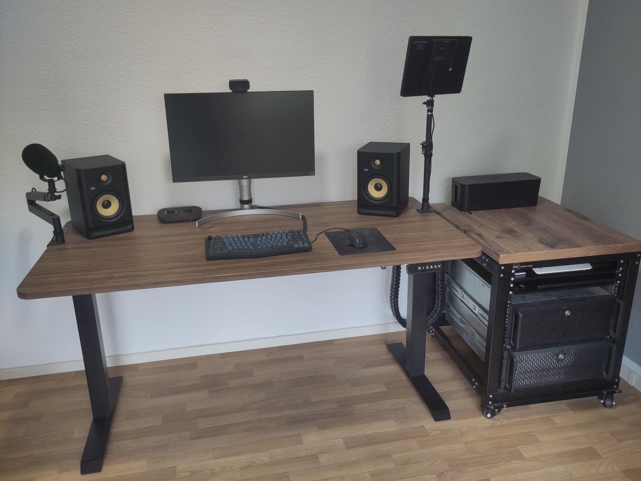 Looks amazing! Those speakers would sound 10x better if they were closer to ear-level. It made a big difference in my setup.