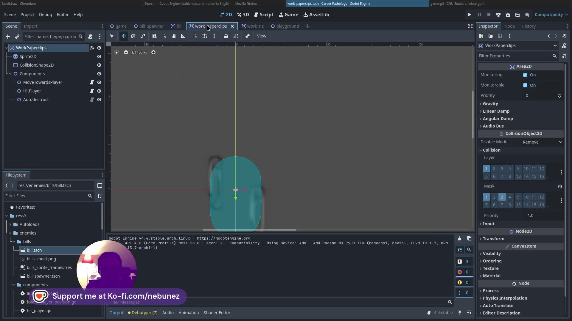 Post-jam work on my latest game! #Godot #GodotEngine #GameDev #Emacs