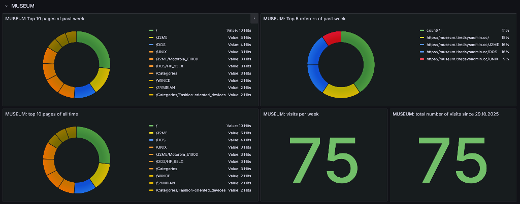 Recipe for my specific case: add fetch() on the page you want to track, supply window.location.pathname and document.referrer to track source, send it to some middleware appending data to SQLite (or any other) DB, add a data source in Grafana, filter out bots by their User-Agent headers, adjust as needed.