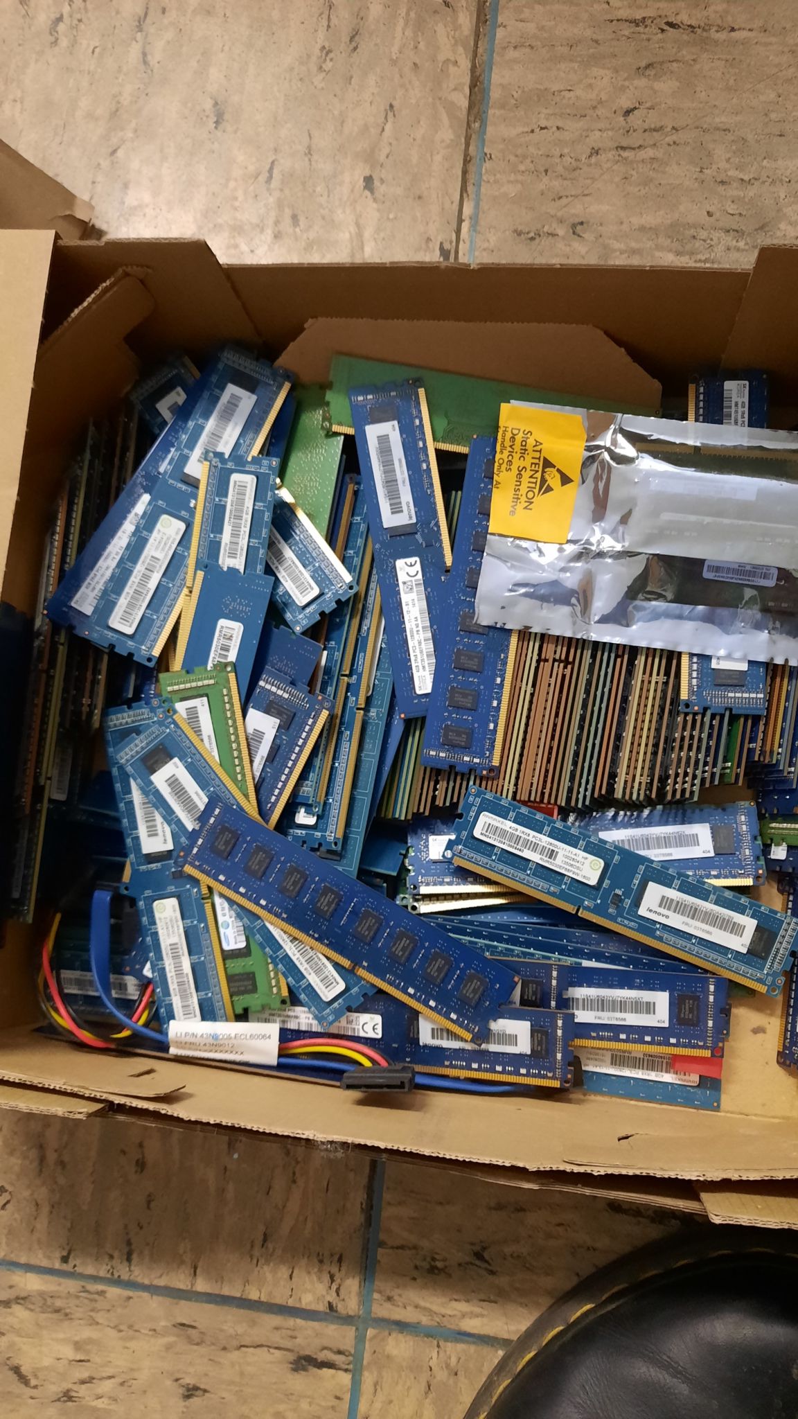 The box of DDR3 memory is probably worth something, but it would be hard to move. If you know an electronics recycler they might buy it by weight for a couple bucks.