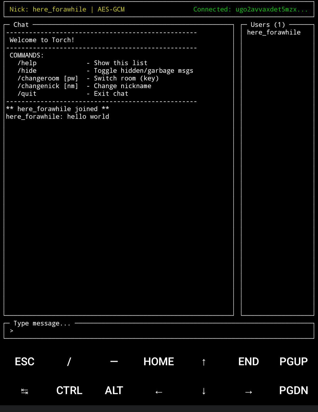 Torch is a barebones self hosted chat system built for the terminal. Rapidly deploy long-term worldwide encrypted communication with a onion static address.