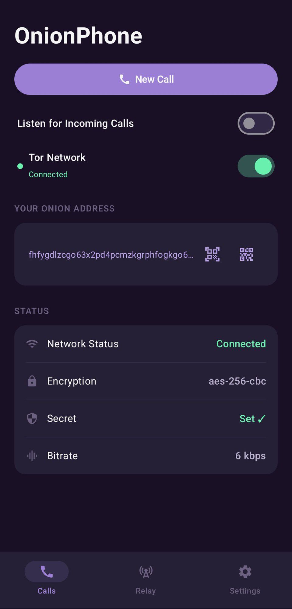 Onionphone is a native Android application for anonymous, end-to-end encrypted push-to-talk voice and text communication over the Tor network. No servers, no accounts, no phone numbers — your .onion address is your identity.