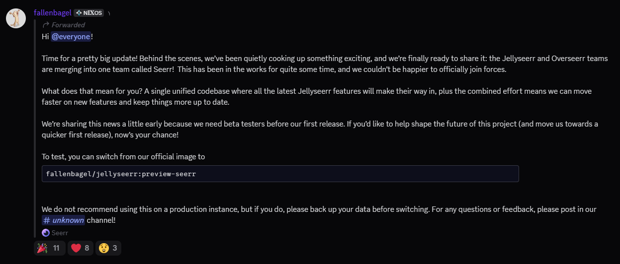 Overseerr was in unannounced on hold anyway, I read it as Jelly people just taking the helm. Great news!