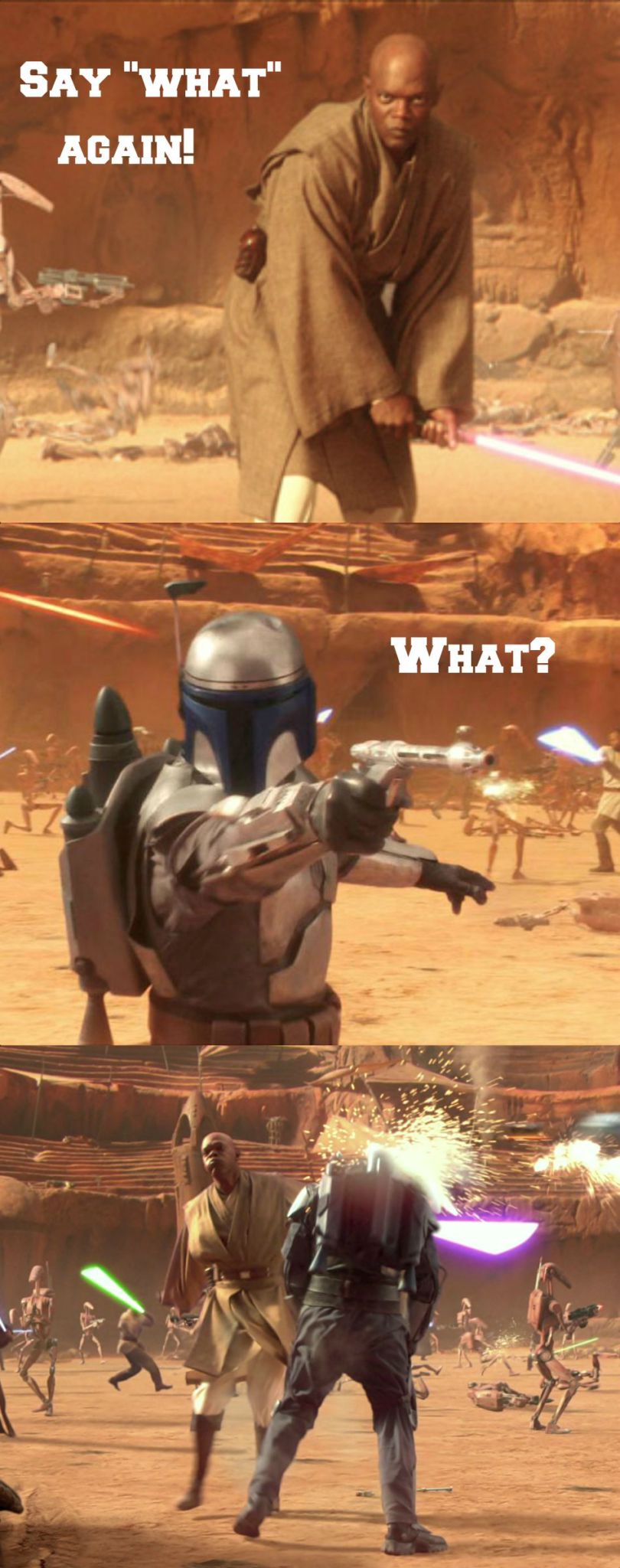The path of the righteous Jedi is beset on all sides by the inequities of the Hutts and the tyranny of evil Sith. The force is with him who, in the name of balance, shepherds the angry through the valley of the dark force. For he is truly his brother’s keeper and the finder of lost younglings. And I will do what I must upon thee with great skill and tempered calm to those who attempt to poison and destroy my light side brothers. And you will know I am the Jedi Master when I lay my lightsaber upon you.
