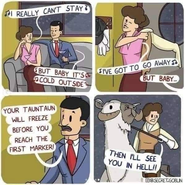 … and that’s why we never heard of this Star Wars character ever again … she froze death on the planet Hoth before reaching the first marker and her body and tautaun were never found.