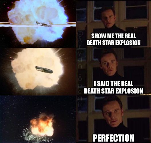 Plus once all the air burned up that was in the death star there would be no more left to fuel a fireball. So the parts of the death star getting blown away would look normal but the fireball would die off quickly and not spread very far.