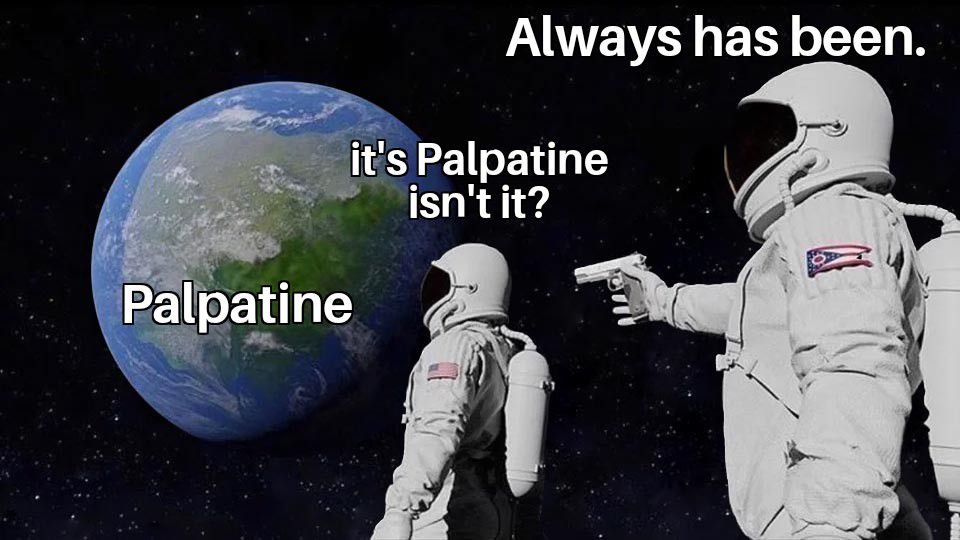 Palpatine: <img alt="" src="https://feddit.org/pictrs/image/bff82072-00be-449b-a7b7-22142b0aee30.jpeg">
